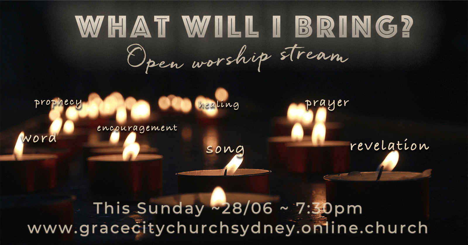 We invite you in the privacy of your own bedroom or lounge room to join us in worship. Turn the screen off but keep the sound on if that helps. Send us a song request. Dance, sing, wave a flag, pray, paint a picture, celebrate with us!